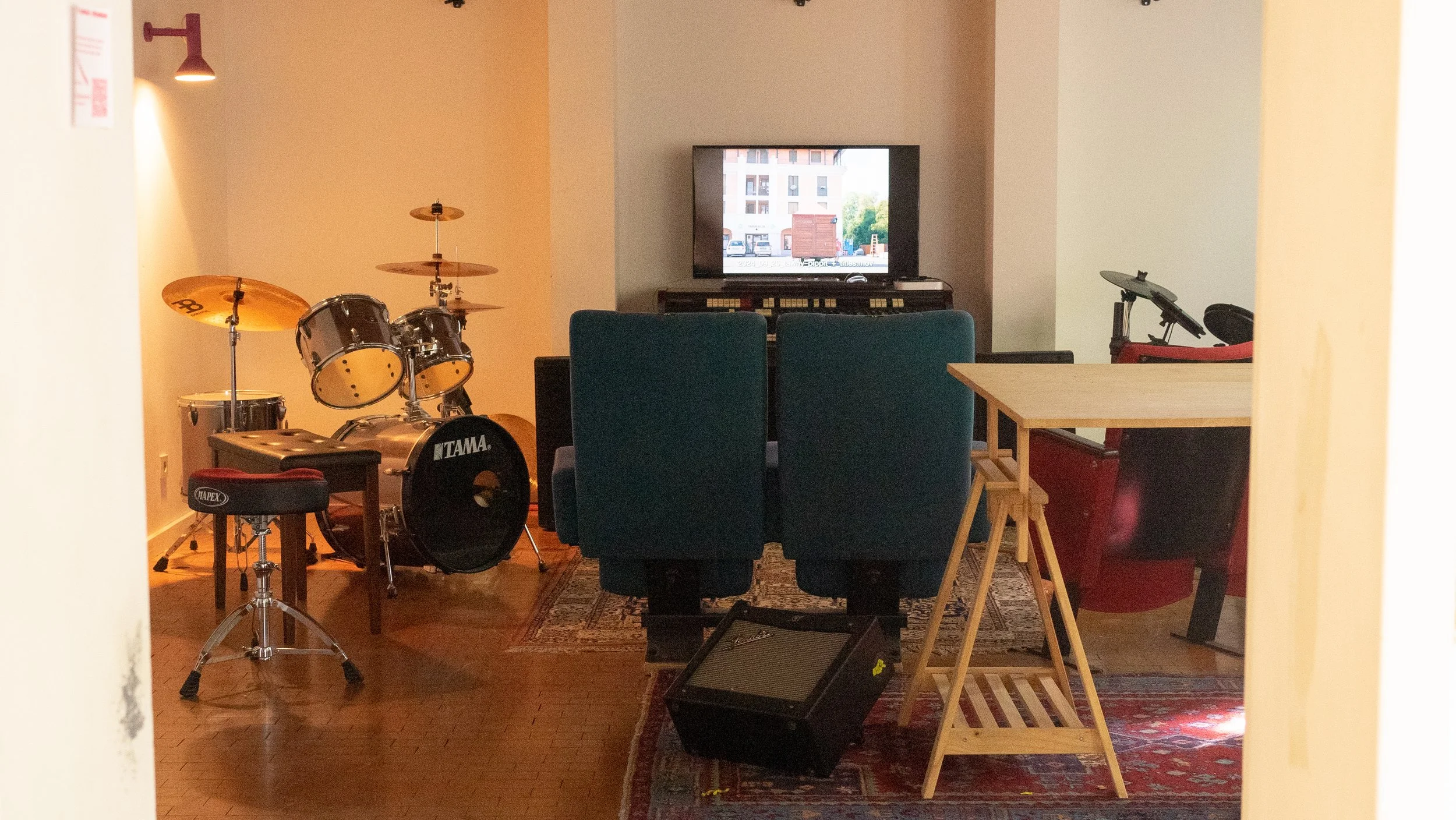 Der 70m2 große Saal mit grundlegenden technischen Möglichkeiten eignet sich perfekt für Proben aller Art, als Fotostudio, für öffentliche Workshops, Lectures, Diskursrunden und vieles mehr.